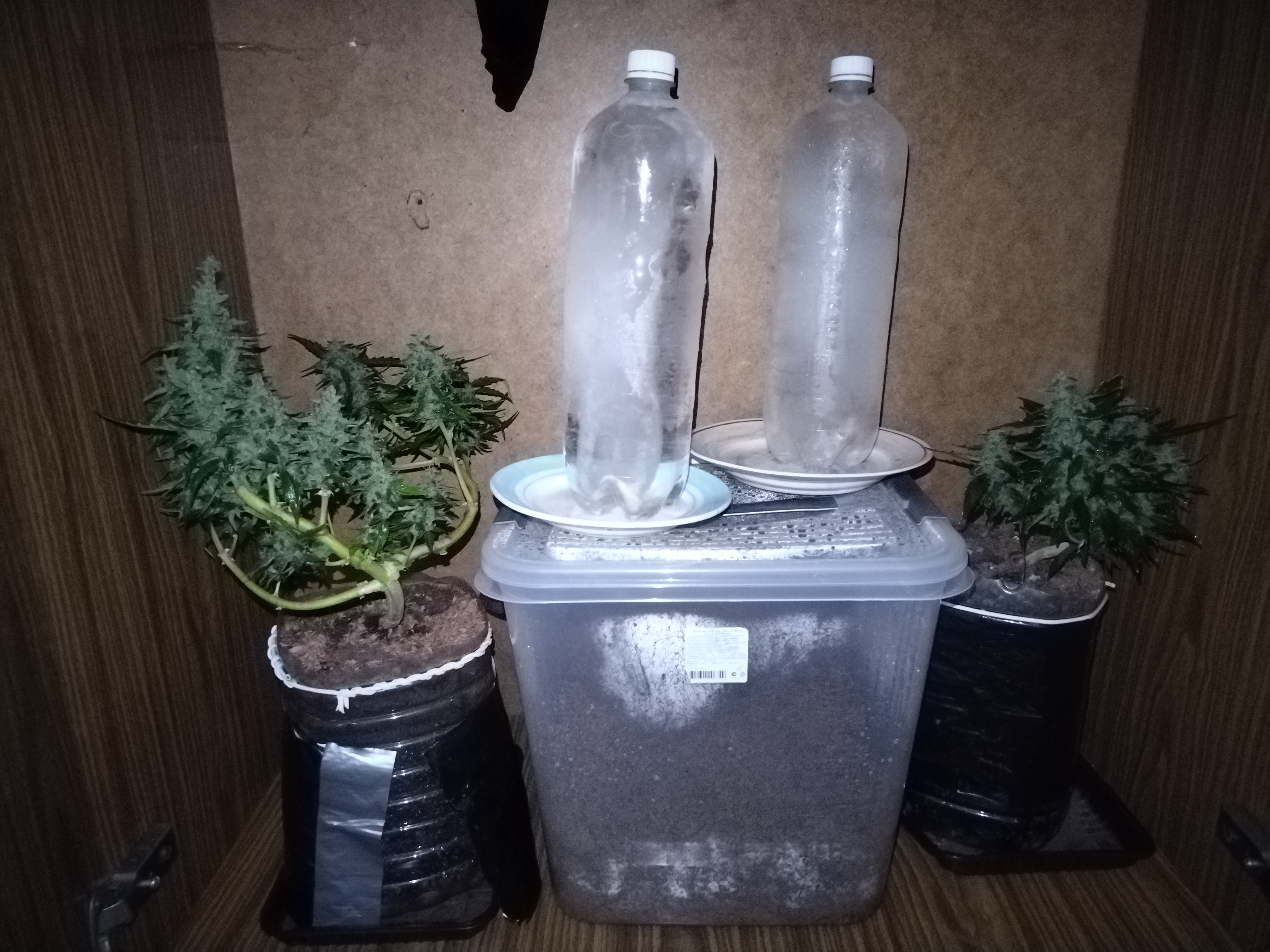 Брал Indica Mix #2 Одним из трёх семян был этот экземпляр. Он слева, дал в итоге местами жёлто - фиолетовые листья возле бутонов. Всем доволен, но фенотипы разные, я сделал из него Bonsai Bush, Он выглядел могучим.