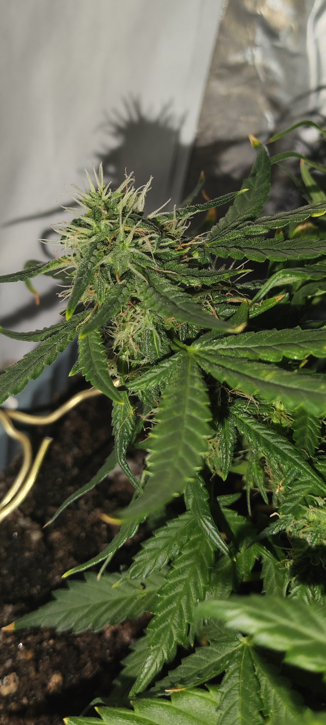 55 день от каски, мини-стелс бокс, девочка чувствует себя хорошо, хорошо цветет и очень слабо пахнет, хотя трихомы уже вовсю полезли. Запах еле еле чувствуется,