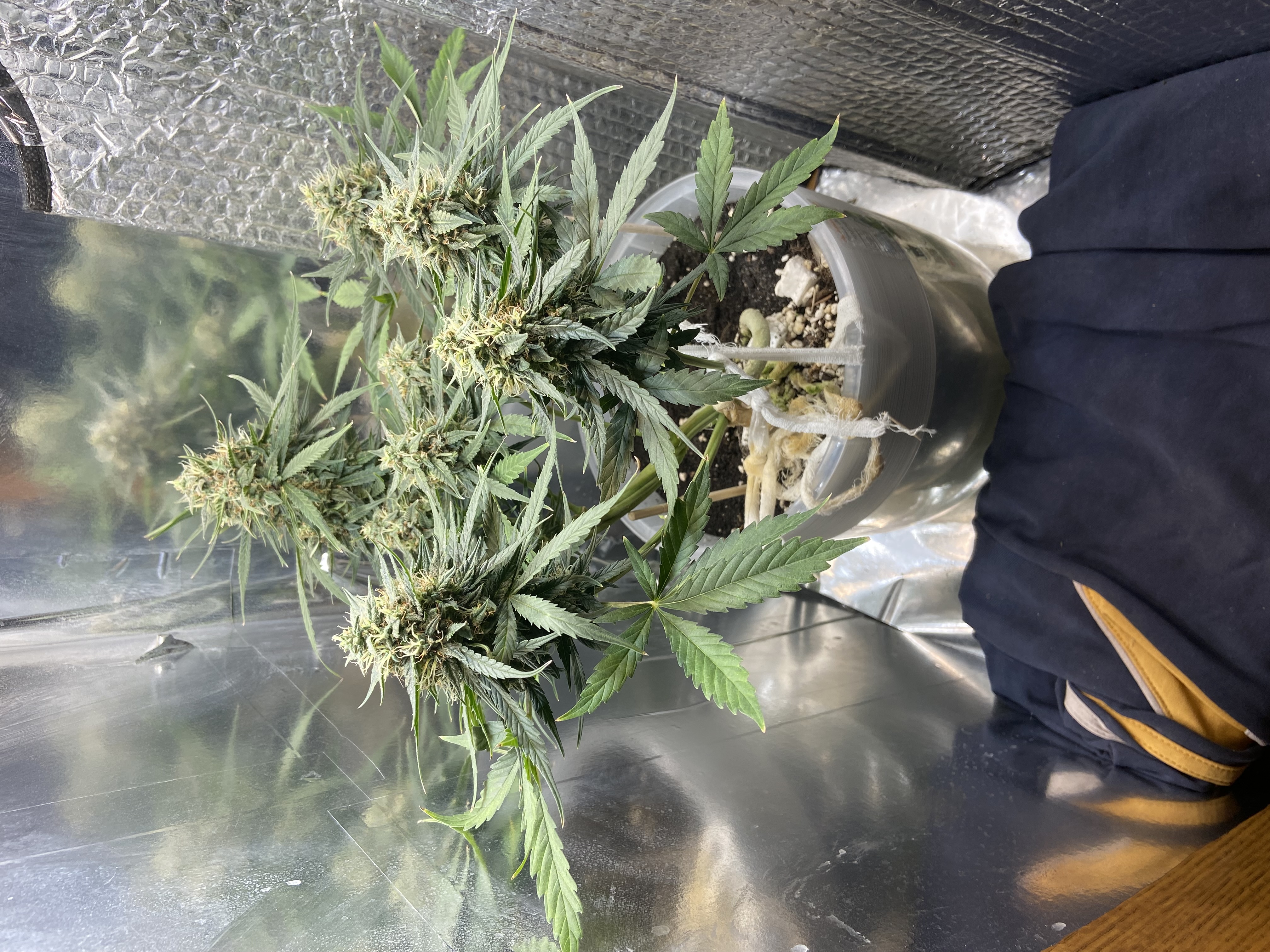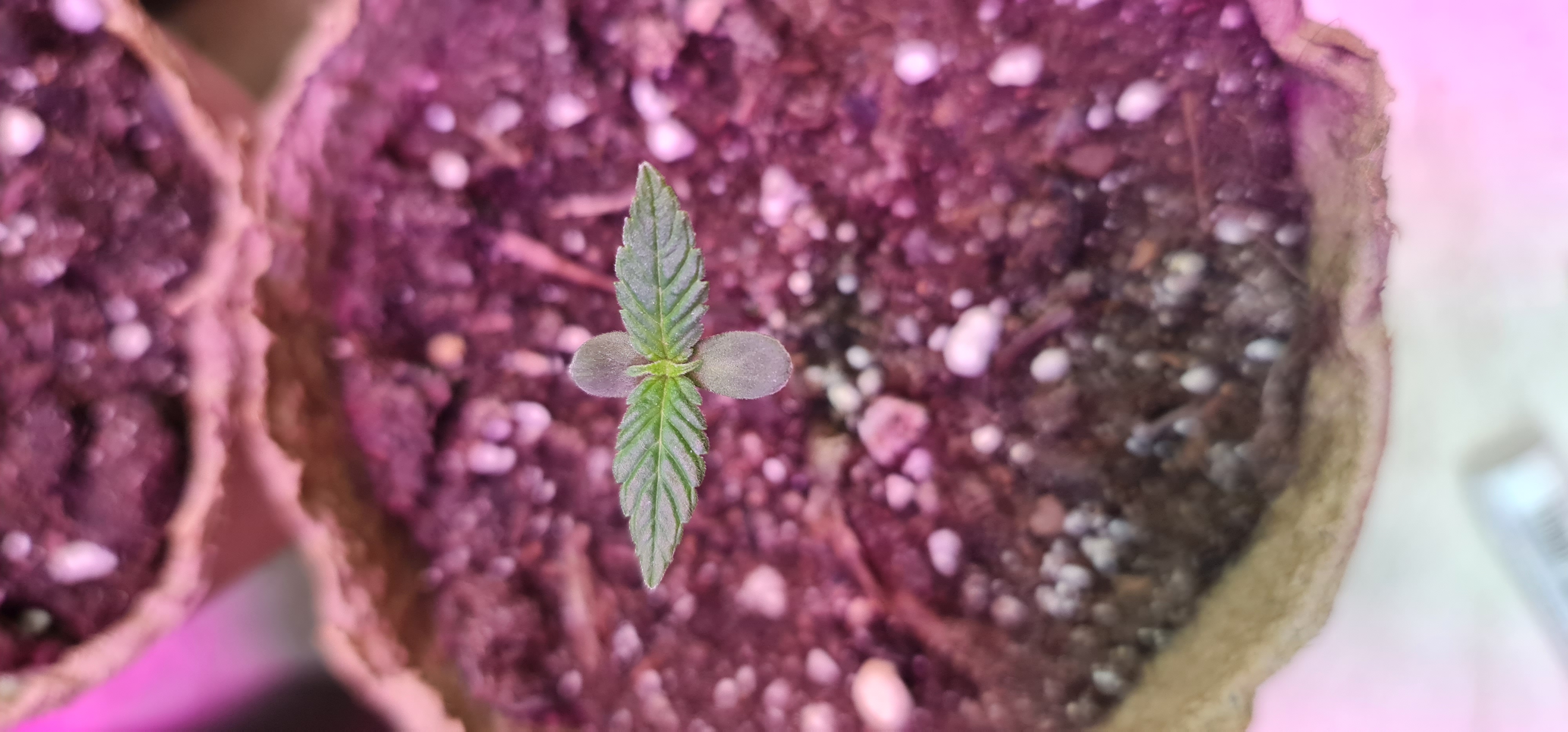 Замачил в ватных дисках 2 семечки,2 ждут выезда в аутдор по сезону.Через 2 дня появился корешок,высадил сразу в два мешка ,земли 9 литров.В течение 3х дней появилась жизнь! 🙂 На фото 28 дней от прорастания🥺.Полил гуматом для укрепления корней и роста,уехал на много,бате сказал,поливай дважды в неделю,лампа на 160вт🤫Ближний мешок,там подарочная мороженка гелатто🤭,ох и намучился с ней,с трудностями мы пробивались в жызнь😌,25 дней примерно ей.Генетика понравилась,отличный Сид бак
