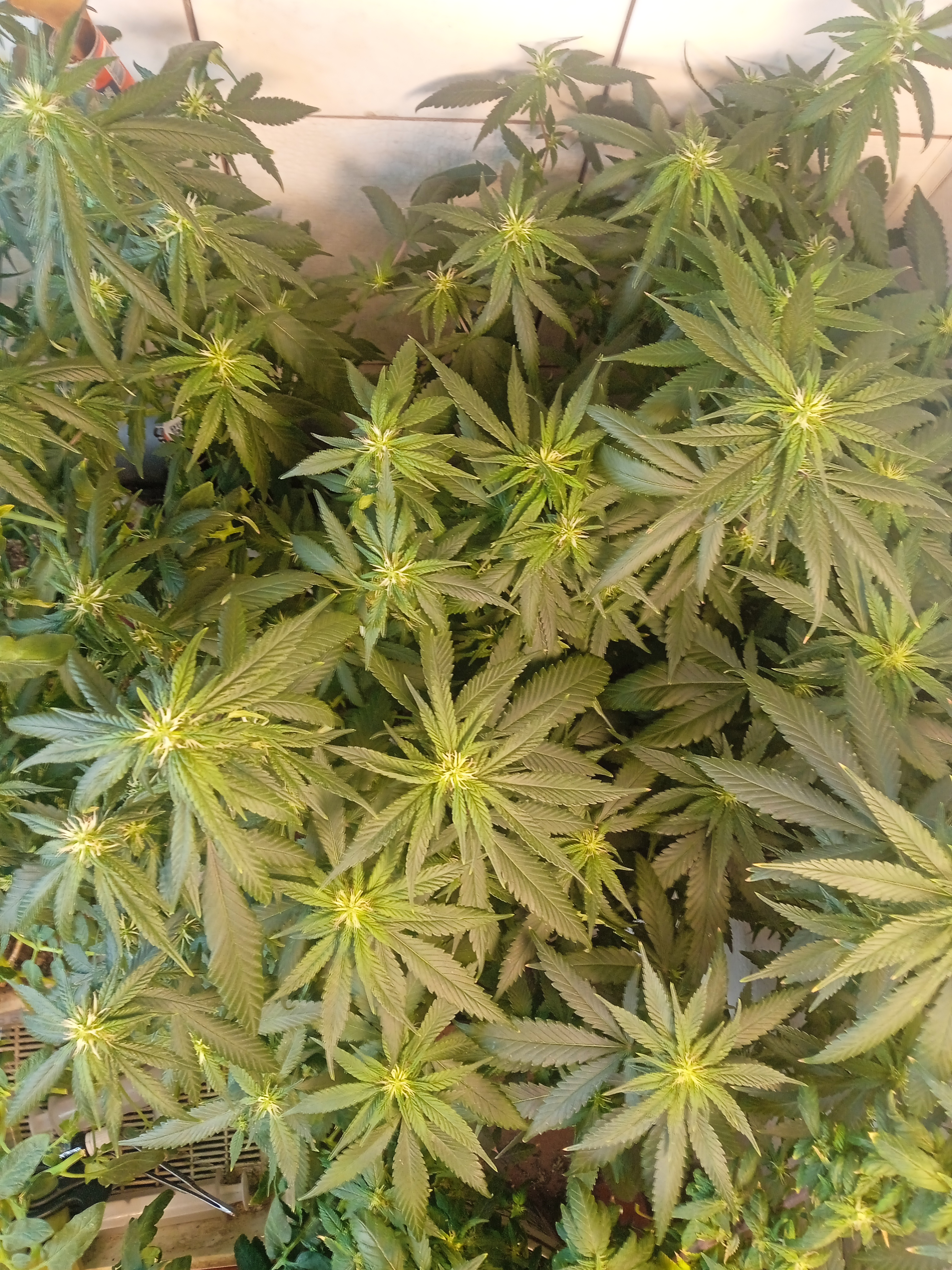 Феноменально быстро зацвел. 60 дней и перевел на 12-12. Буквально через сутки зацвел. Фазу предцвета пропустил и сразу набрал. За неделю соцветия налились и обрасли стигмами. Следующий отзыв перед харвом. Думаю 1 сентября.