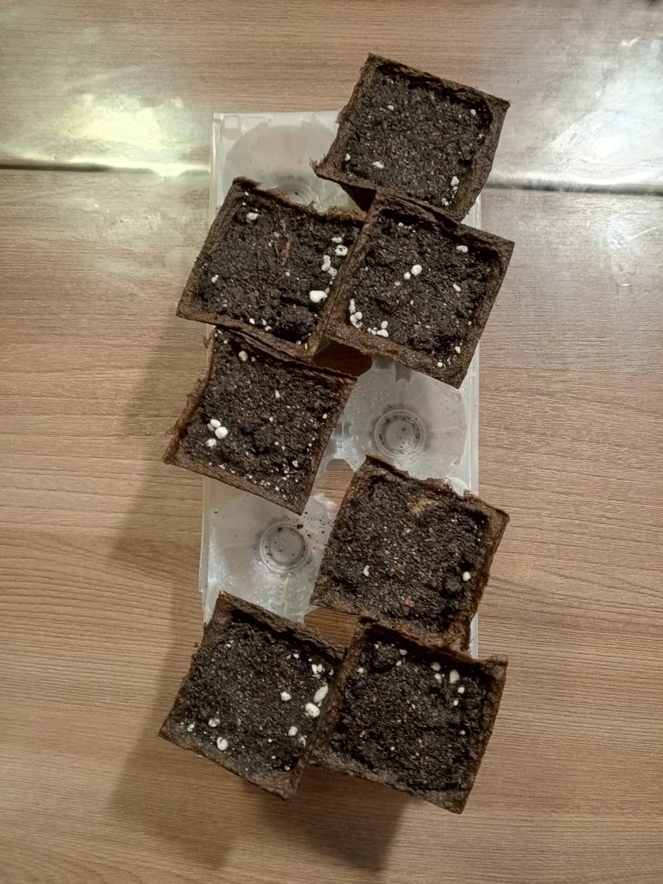 Замочил семена в растворе. Состав раствора (50 мл чистой питьевой воды и 10 капель 3%-й перекиси водорода) Первые корешки начали появляться менее чем через сутки. Через 48 часов проклюнулись все корешки и семена стали готовы для высадки в грунт. Подготовил торфяные горшочки для рассады и грунт - Грунт для лимона и Перлит 50х50 %. Проверим всхожесть. Первые ростки появились на вторые сутки. Через трое суток взошли все семена, 100%-ая всхожесть. Такое в моей практике, первый раз.